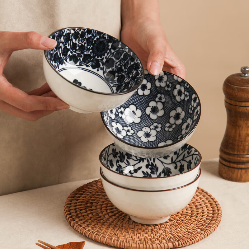 碗の家庭用の釉薬の下の色彩の食器の日本式の陶磁器の茶碗の2023新型の高い顔の値のご飯の碗の食事の小さい碗