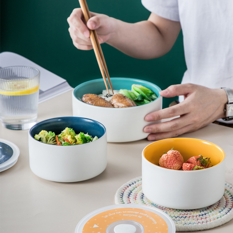 日本式保温弁当箱サラリーマン陶磁器弁当箱は電子レンジで加熱できます。
