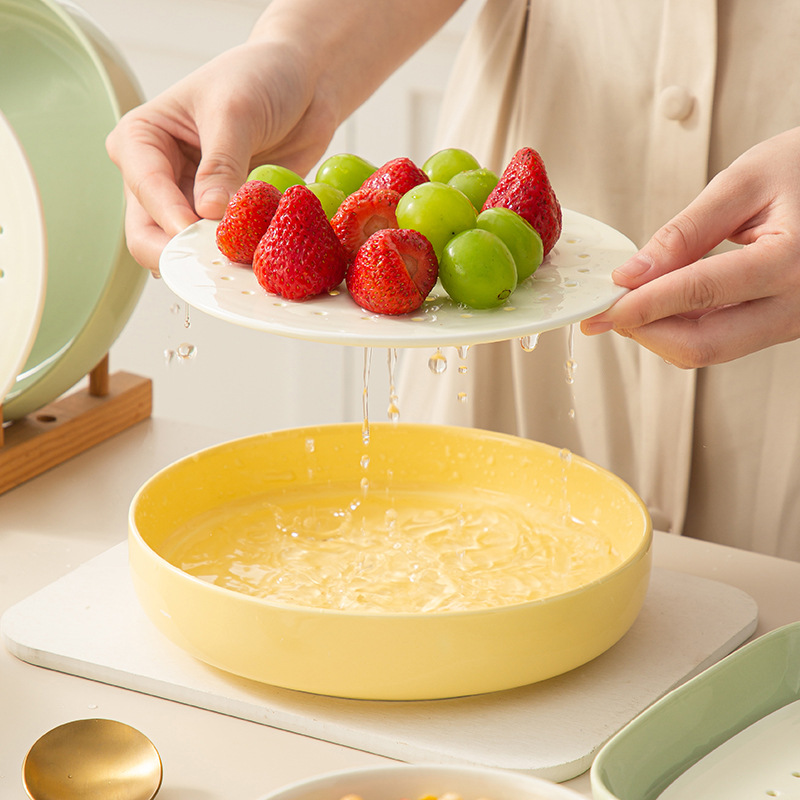 セラミック多機能フルーツ皿水切り蒸し皿餃子皿焼き皿水切りラックオーブン電子レンジ共通