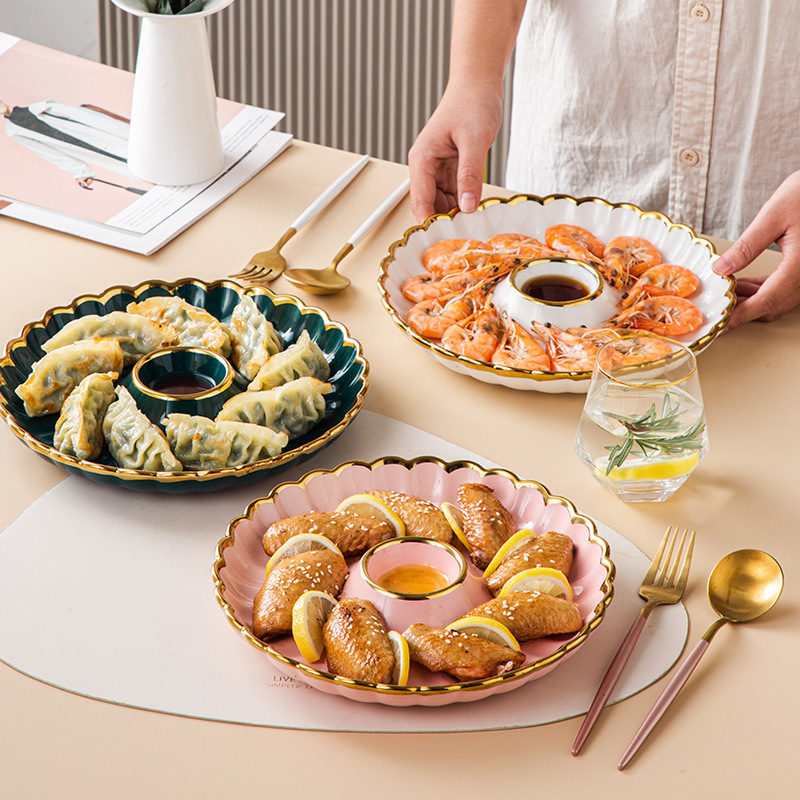 軽豪華高颜値ins家庭用陶磁器餃子専用盤酢皿付き寿司盤分格盤水餃子エビ皿