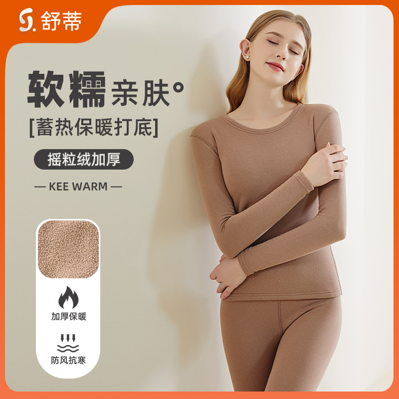 2024秋冬の新型女性のウール保温下着秋衣秋ズボンとベルベットの厚い発熱の底付き保温スーツ