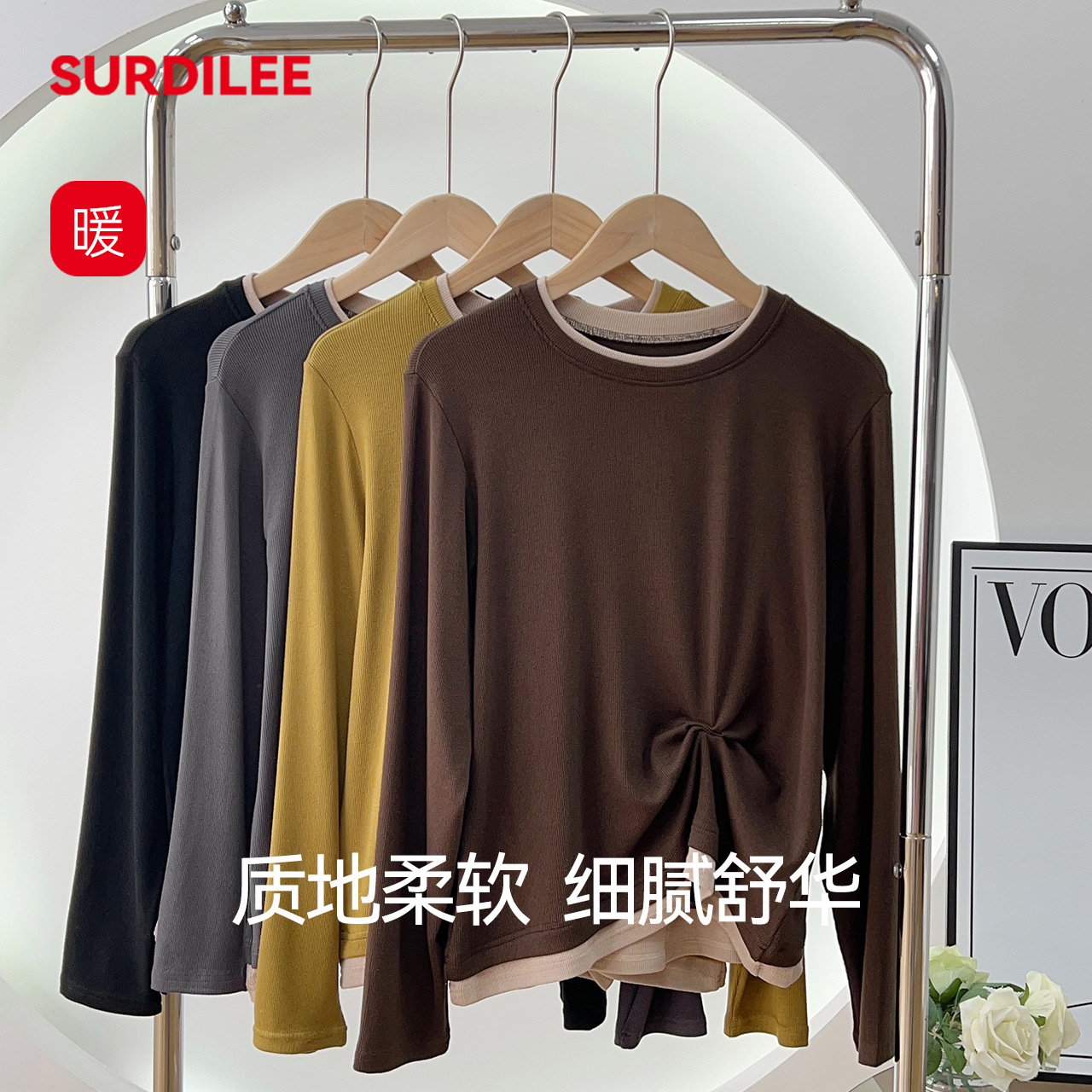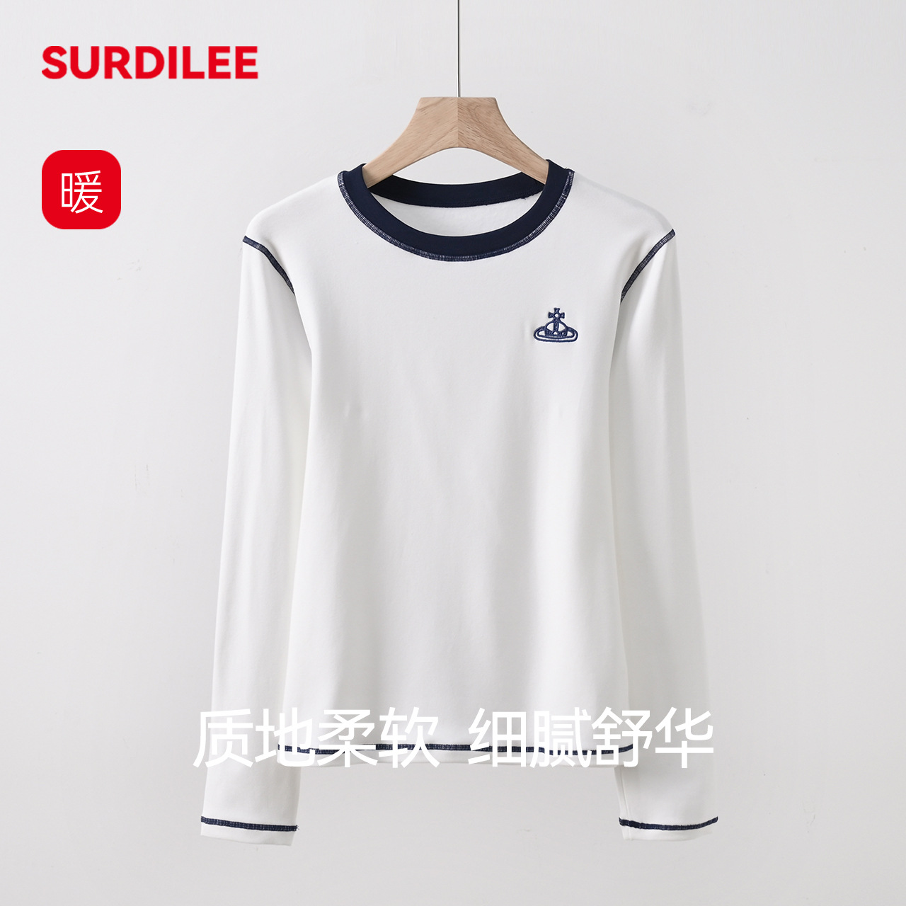 舒蒂24秋冬保温底シャツ女性胸付上着長袖T無胸冬修身vネック下着秋衣