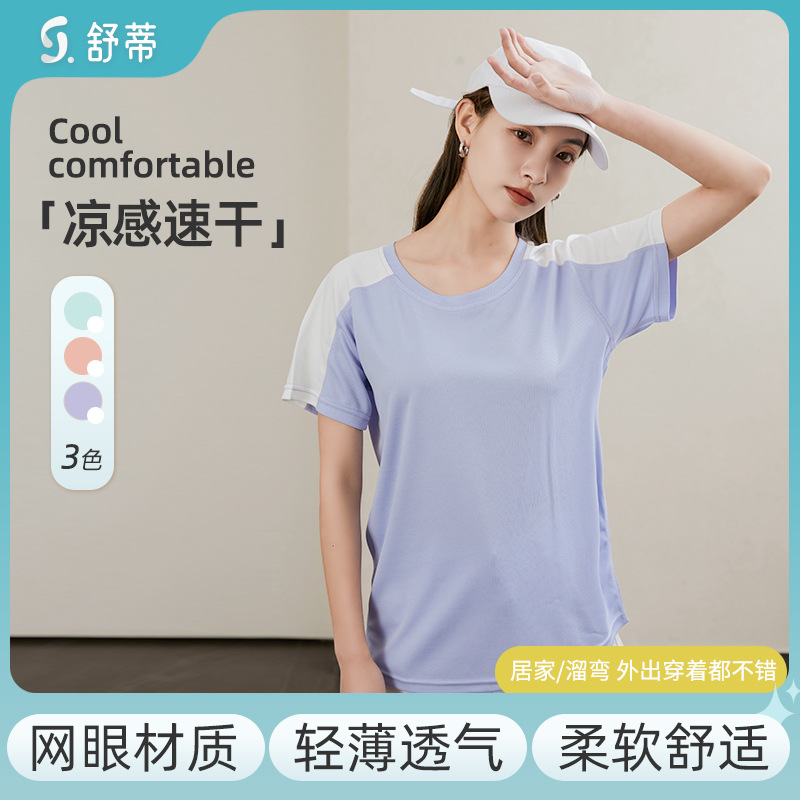 シューティ23夏のゆったりとした通気性のある吸汗速乾服レディーススポーツtシャツ上着フィットネスヨガカジュアル丸襟ショート