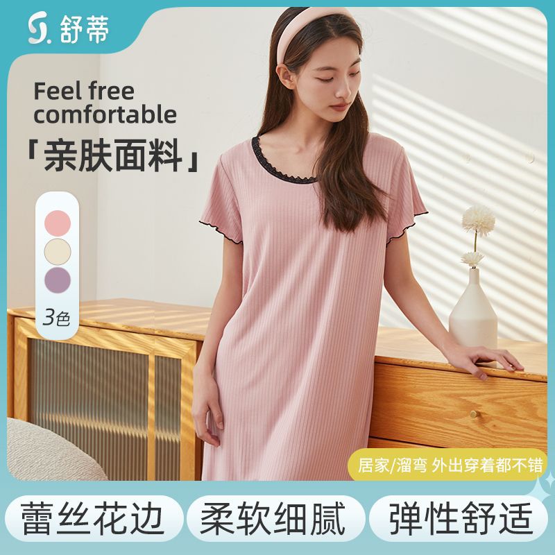 2025 新モーダル半袖ナイトガウン女性の夏の薄いスタイル胸パッドフライングスリーブドレスカジュアル大きいサイズロングスカート
