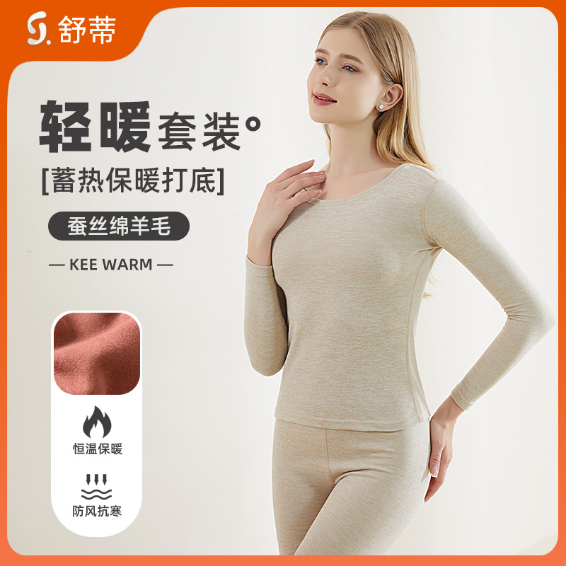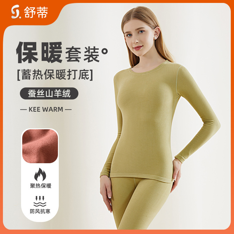 23冬绢糸カシミヤさん秋衣秋ズボン徳絨毛保温発熱女性下着保温セット