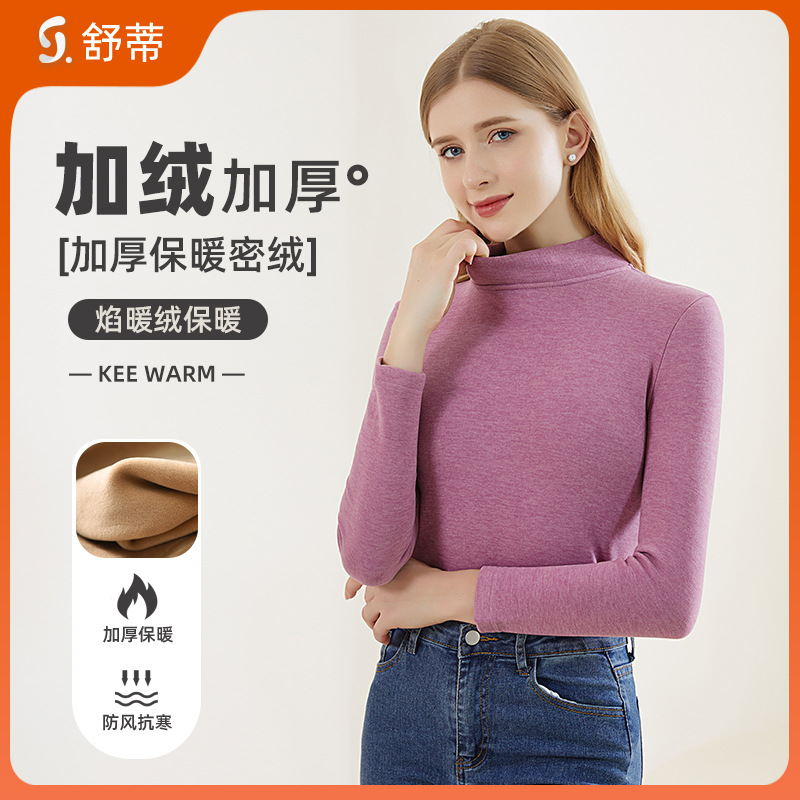 23冬の女性保温下着の女性は二重に厚いベルベットの中襟のシャツ防寒防風長袖上着を着ている