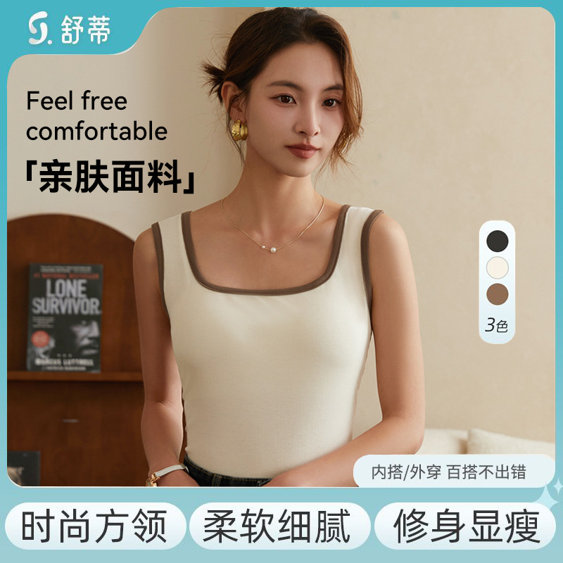 Shudi 春夏レディーススクエアカラースレッドベスト多用途スリムニットインナーデザインニッチバストカバートップ
