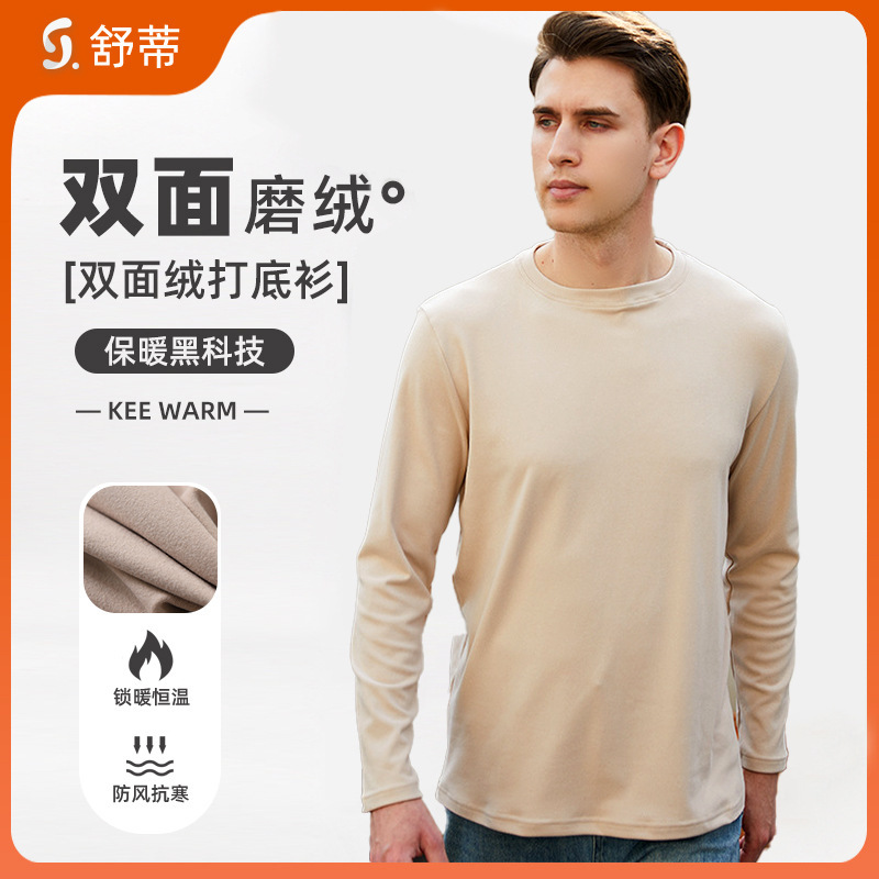 舒蒂メンズの両面の毛の高い襟の底のシャツの春秋の新型の毛の中で襟の衛の純色のカジュアルな長袖のtシャツ
