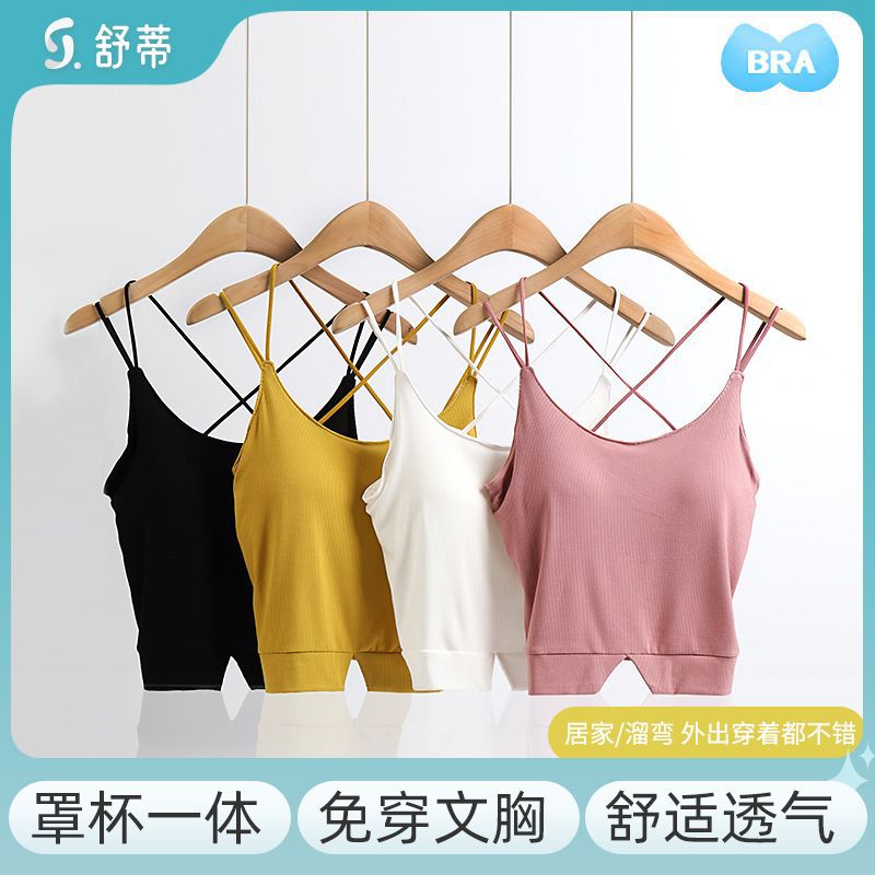 夏の新しい胸パッド付きキャミソール女性運動ヨガbra女性の中にセクシーな袖なしの肩の上着がついている