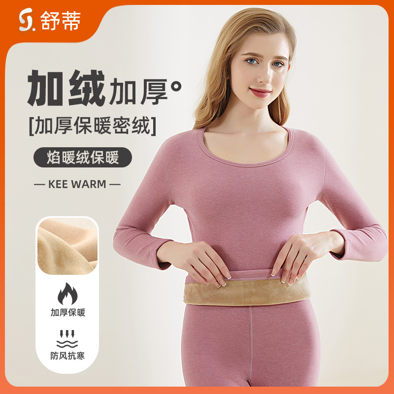 23冬绢糸カシミヤ男女秋衣秋ズボン徳絨毛保温発熱カップル下着保温セット