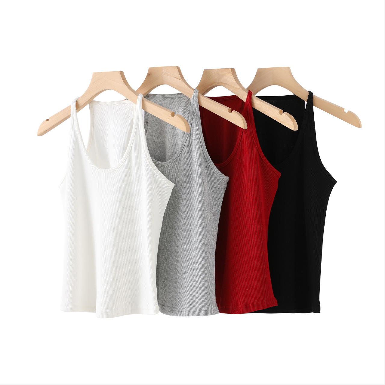 ホットガールタイト痩身Uネックホルターネック狭い肩キャミソールレディース夏弾性スリムノースリーブニットトップ