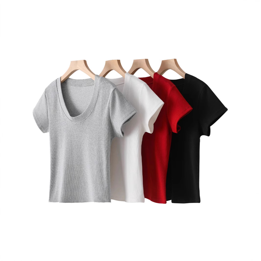 2025 新しい夏のスタイル INS セクシーな大きな U ネックスリムフィット小さなフライングスリーブボトム T シャツ
