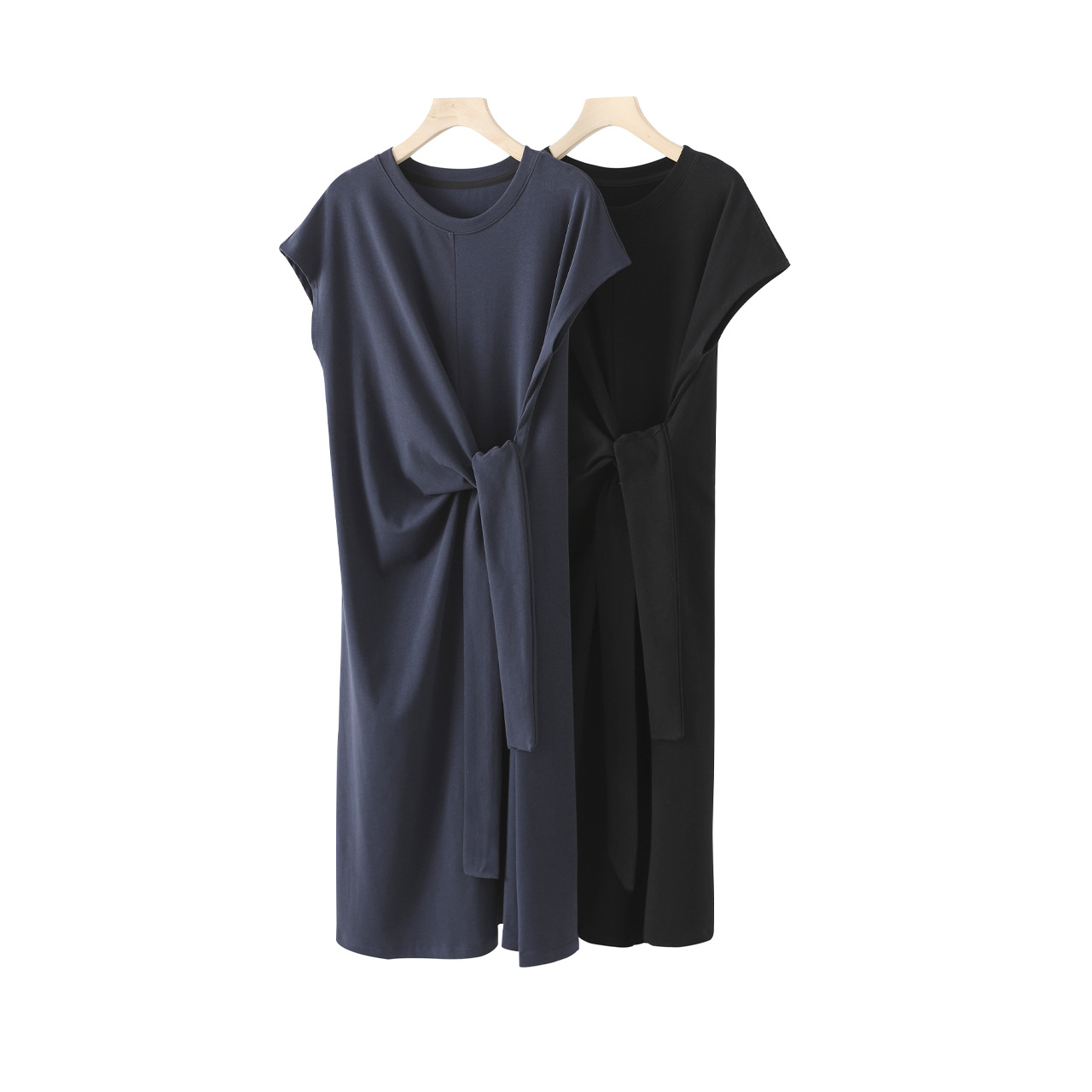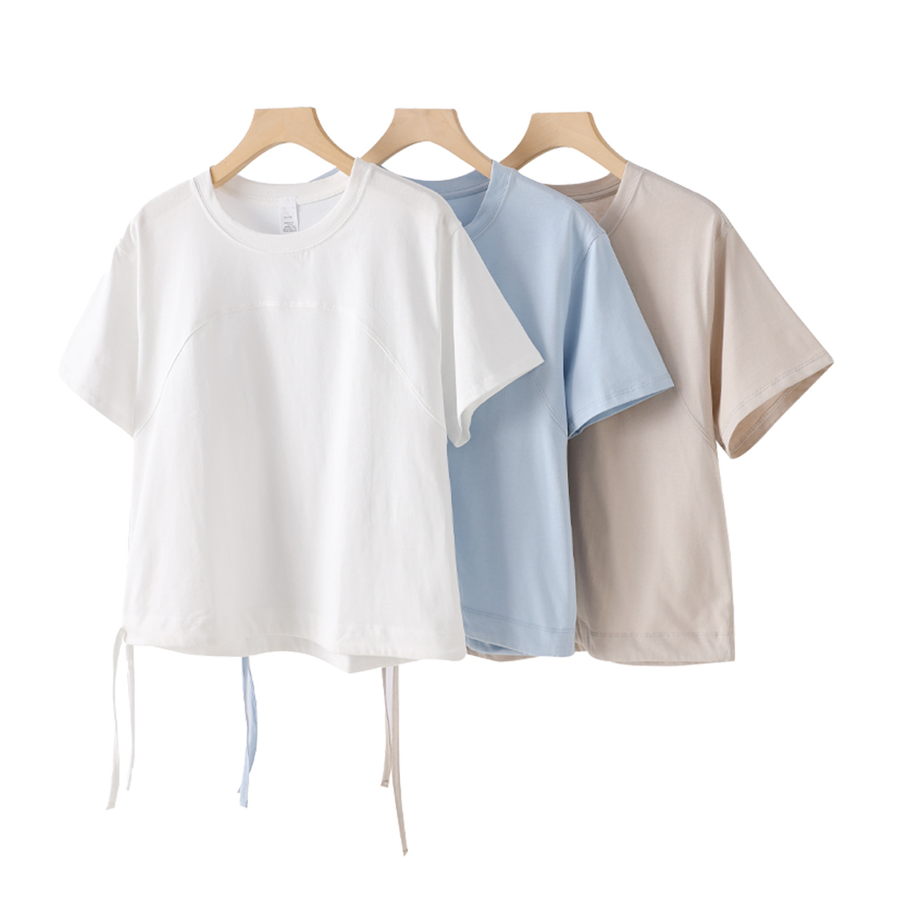 裾巾着右肩半袖Tシャツ2025夏新作スリムトップ
