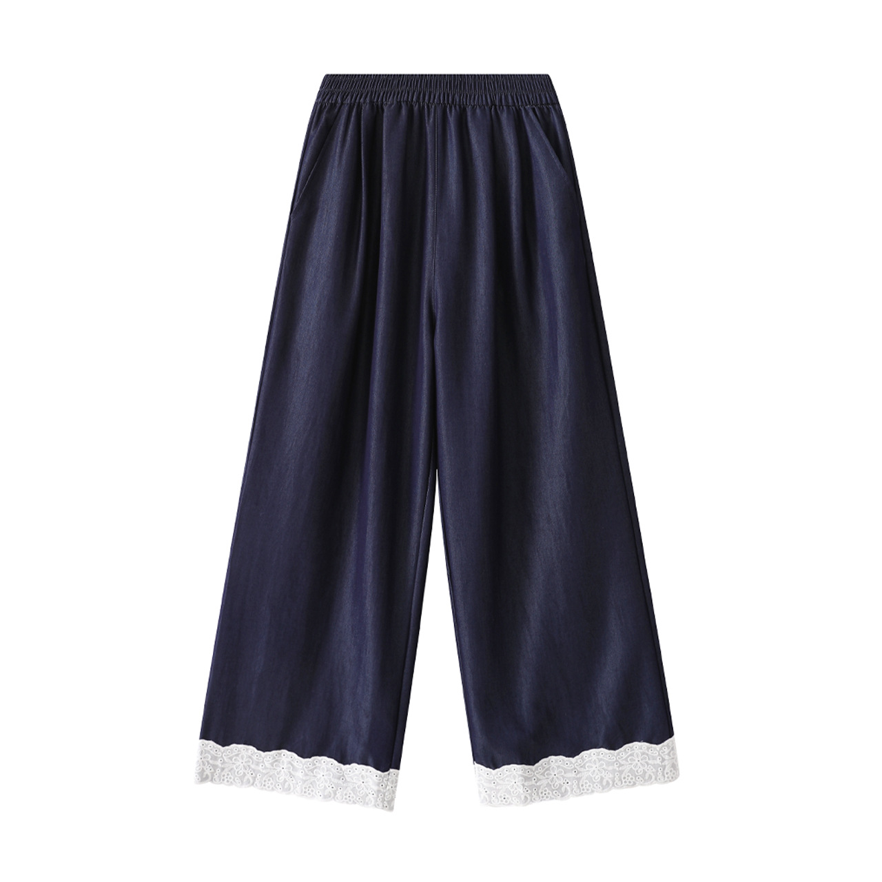 レーストリムレディースワイドレッグパンツ9点パンツゆったり着痩せストレートカジュアルパンツ夏薄手