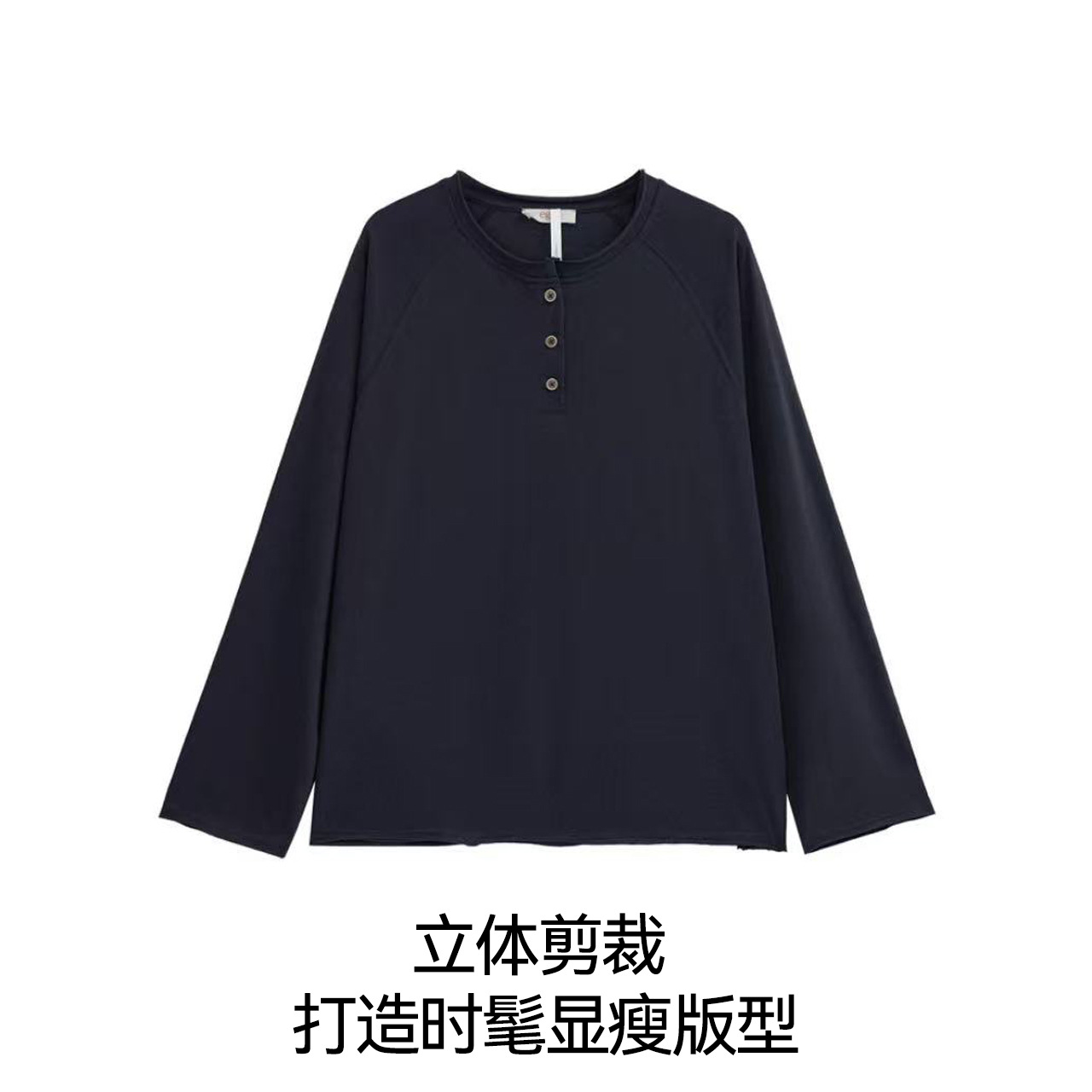 香港風の純色のtシャツ2025新型のゆったりしている中に男女の春秋の金の百合の丸首の長袖の上着を掛けます。