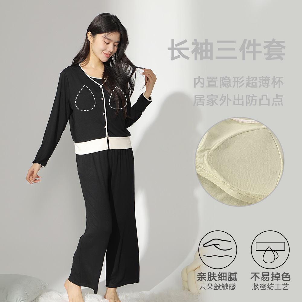 胸パッド付きパジャマ女性夏の薄い丸首カバーのベストズボンの家庭服セット