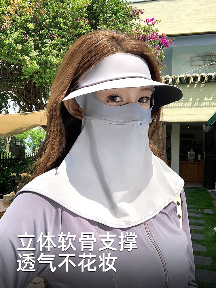 日焼け止めマスク全顔紫外線防止日よけ女氷糸黒ゴム帽子一体首保護顔ジニ騎行マスク