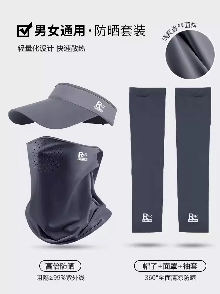 氷糸騎乗日焼け止めマスク男性紫外線防止マフラー全顔ベール男性用氷袖日焼け止め帽子セット