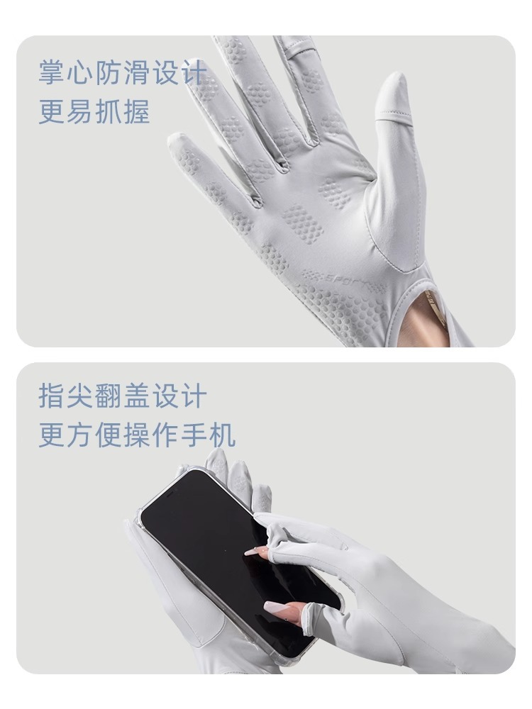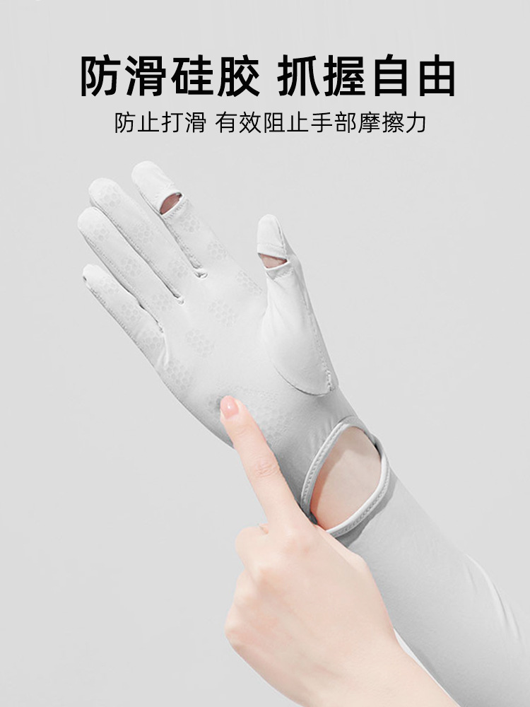 UPF50氷糸日焼け止め手袋女性夏のロング五本指紫外線防止運転滑り止め薄手袖