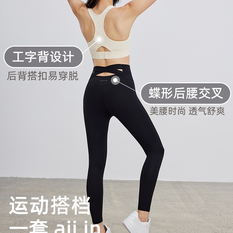 Neverme工字背高強度防振垂れ下がり防止運動下着お尻ヨガパンツヨガ服セット女性