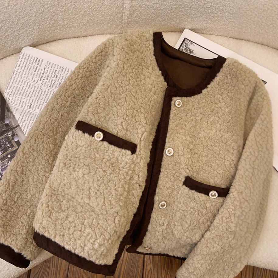 2025年秋冬新作、小さめ体型向けの韓国風ショート丈の高級感のあるウールコート、小香風ニットコート