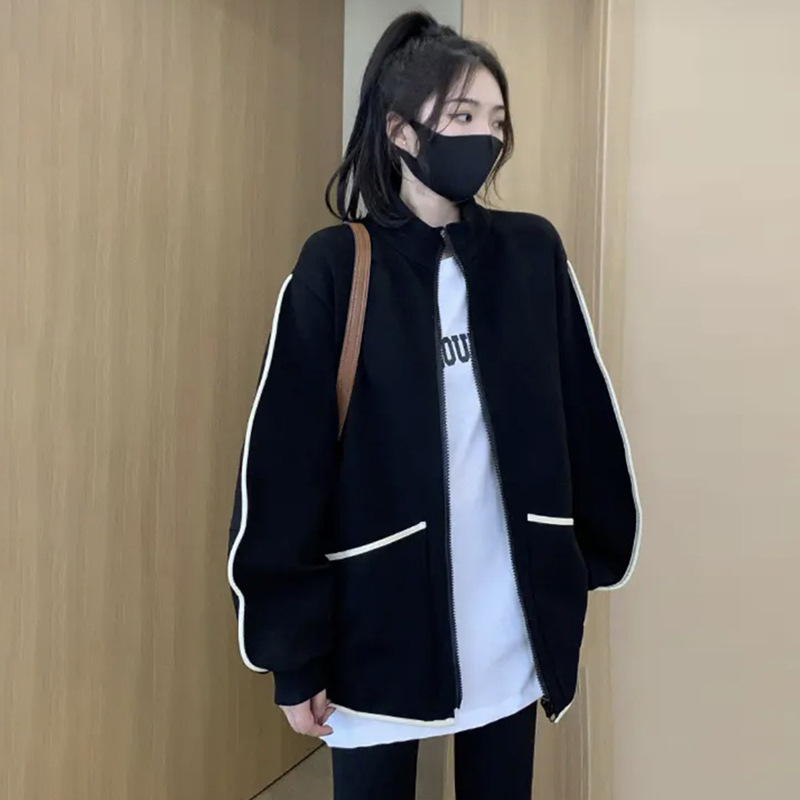 春秋の服装の新型の怠惰な風のゆったりしているスポーツのコートの女性の韓国版の百合のカーディガンのカジュアルな野球の服の上着