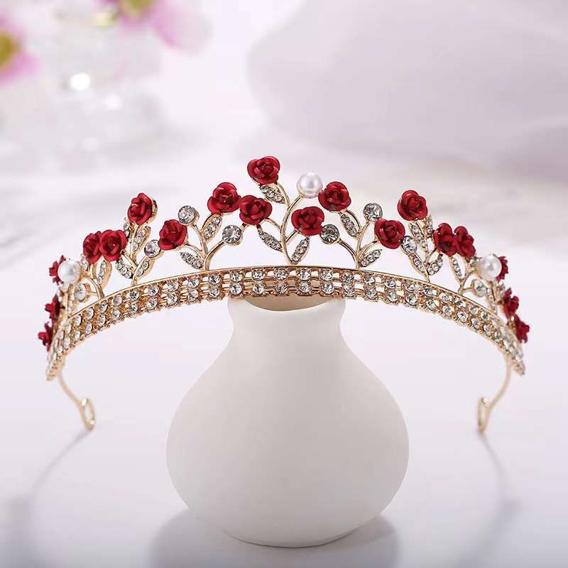 2023新しい花嫁クラウンクリスタルカチューシャ姫子供ティアラ诞生日クラウンピンク手作りクリスタルクラウン