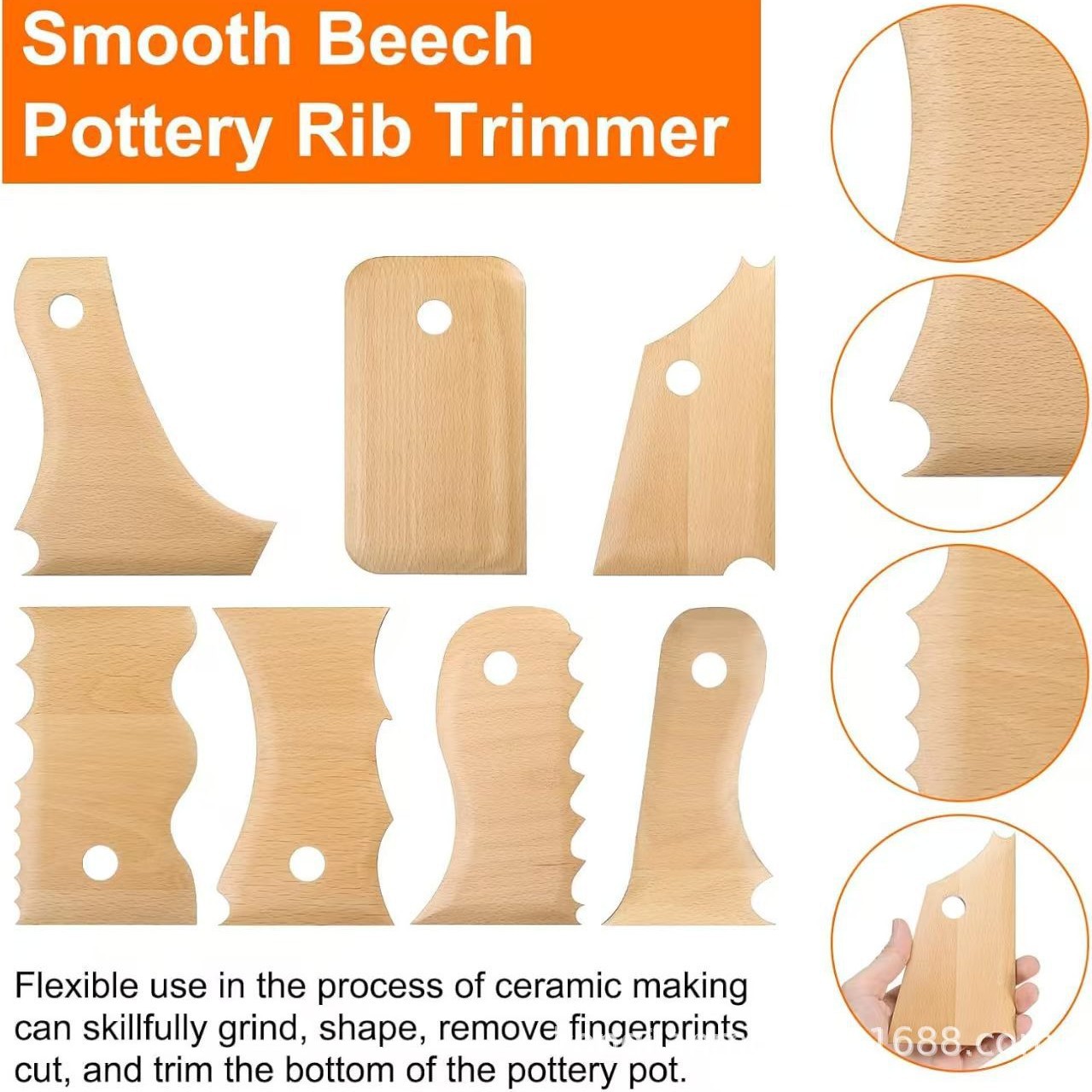 国境を越えた木質陶芸7点セットの道具骨格刀陶器の足部の修理辺の泥の形の刀diyは白地の形の工具を引き出します。