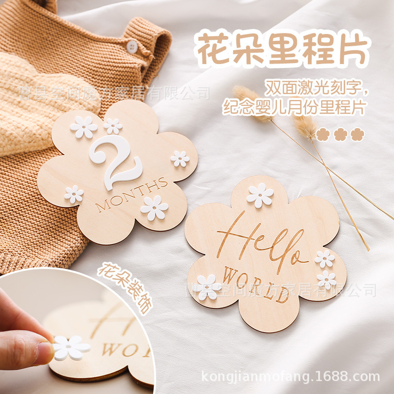 新生児の写真記念花 1-12 ヶ月の誕生日写真記念装飾品木製花マイルストーンおもちゃ
