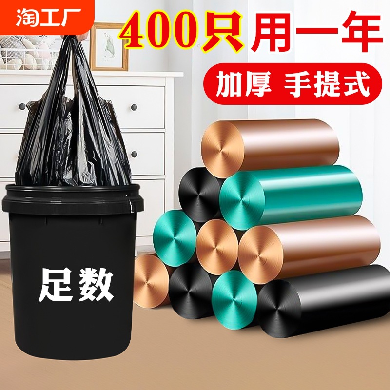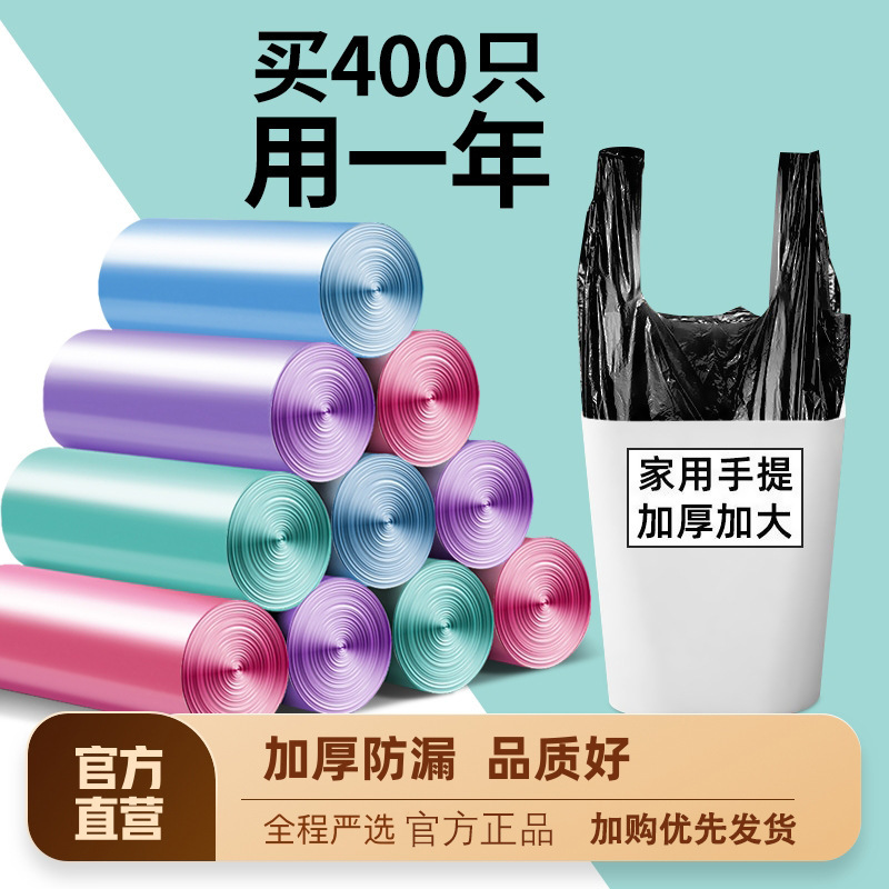 平口全箱ゴミ袋巾着式家庭用手持ち式黒色厚手ベスト一度引きバケツビニール袋