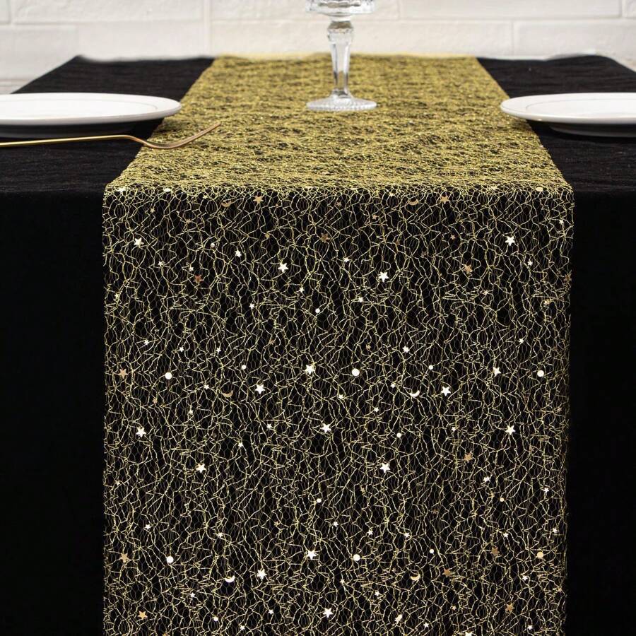 工場卸売りクロスボーダー熱売金色網紗閃光テーブル旗屋外結婚式ホテルレストランテーブル装飾用品