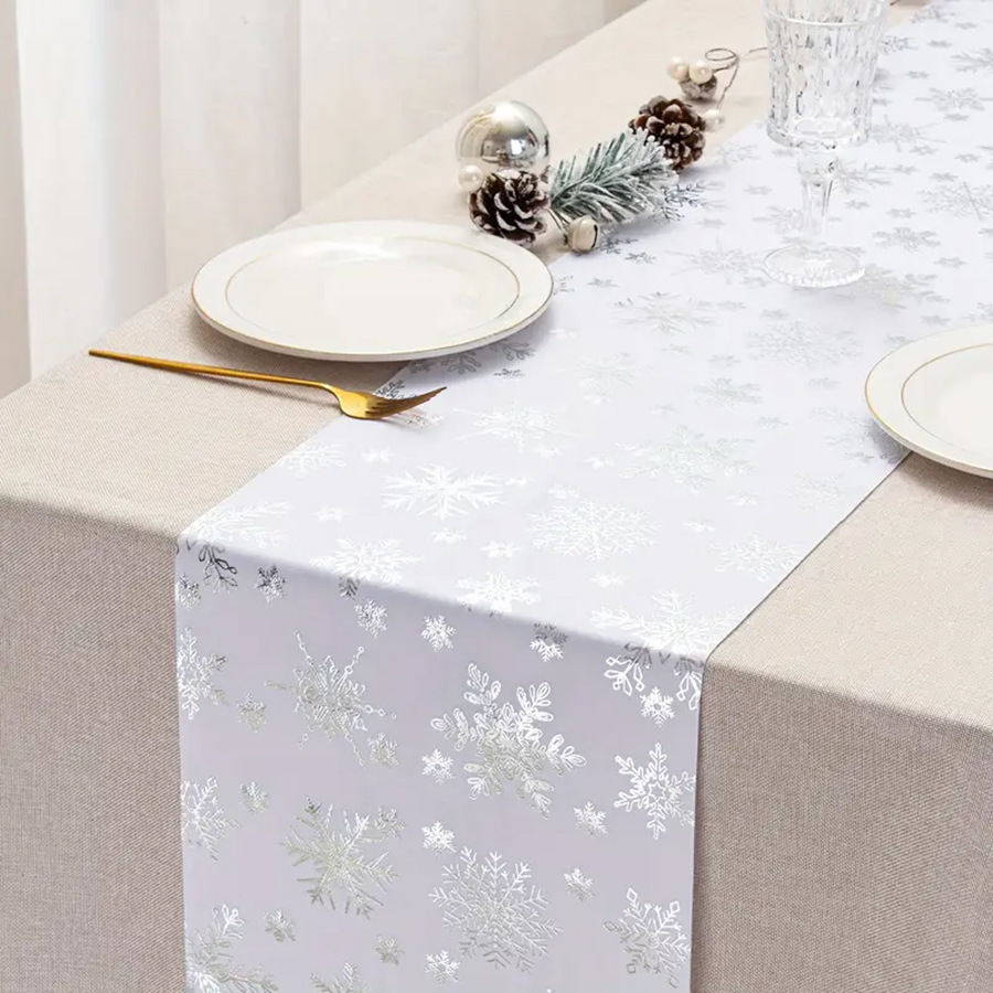 国境を越えたアマゾンの人気白雪花テーブル旗クリスマス家庭食リビングテーブルの祝日装飾断熱テーブルクロス