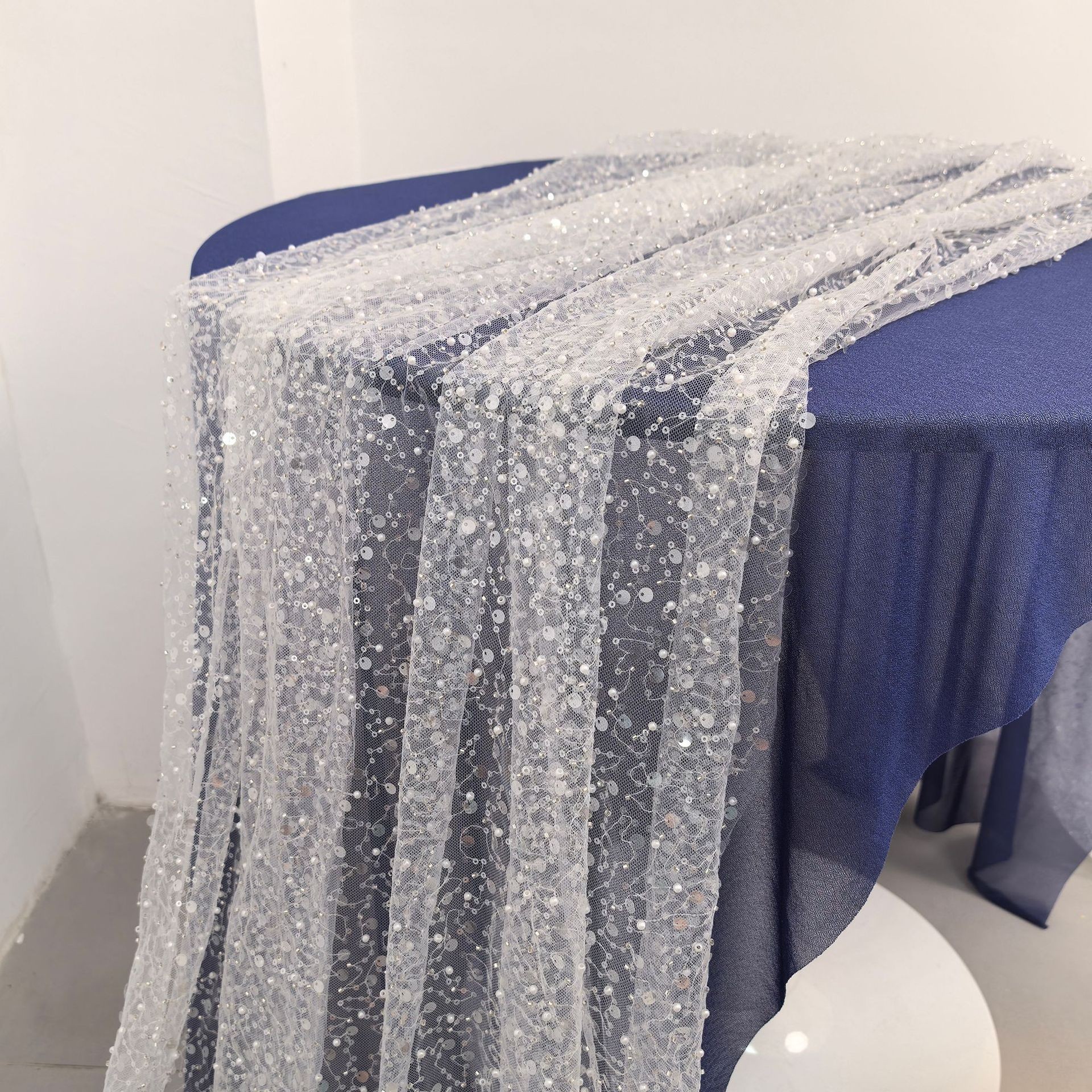 国境を越えたアマゾンの新しい真珠のスパンコールのテーブルの旗の半透明の柔らかい糸の結婚式の装飾の背景の布