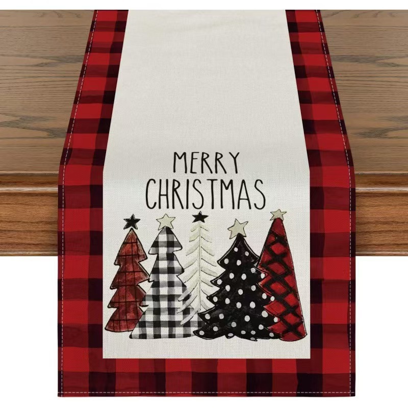 国境を越えたクリスマス亜麻テーブル旗祝日家庭レストランリビングテーブル室内屋外装飾格子テーブル旗