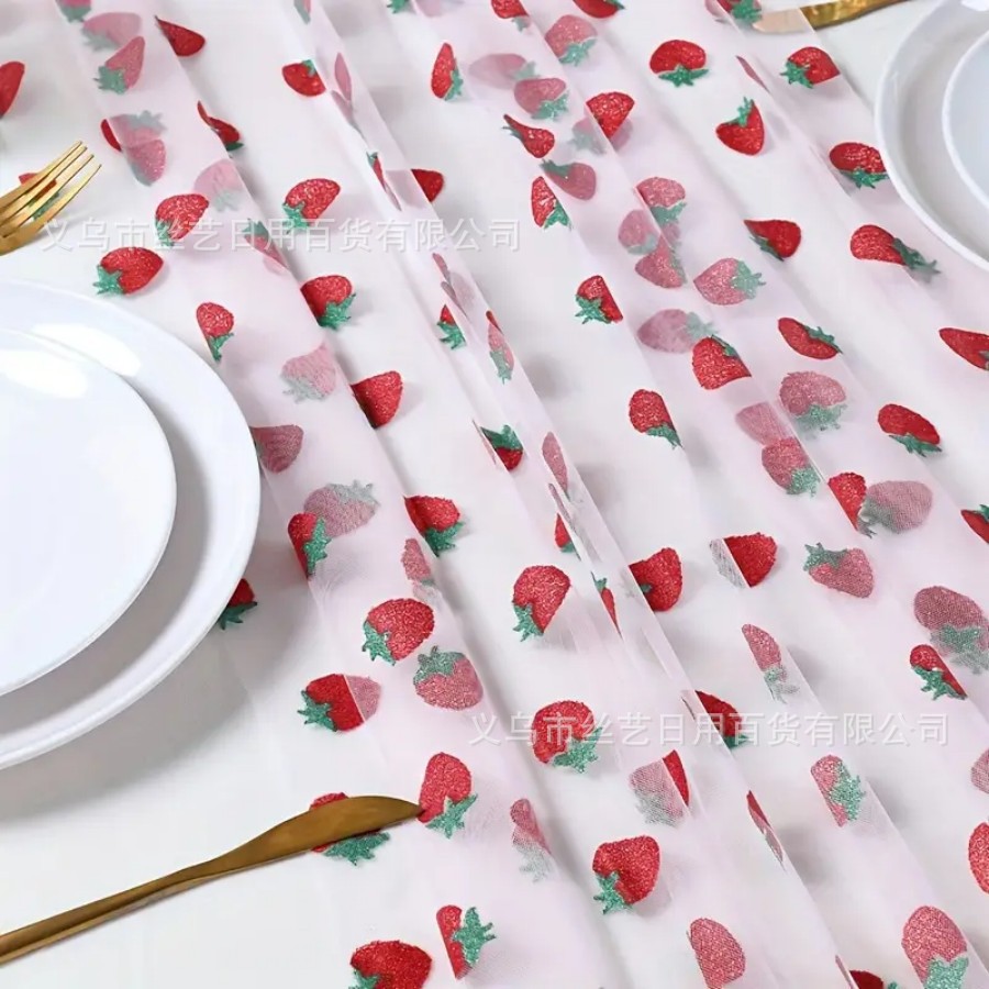 クロスボーダーホットスタイルメッシュイチゴ柄テーブルフラッグウェディングパーティーイチゴテーブルクロスインスタイルピンクデスクトップ装飾