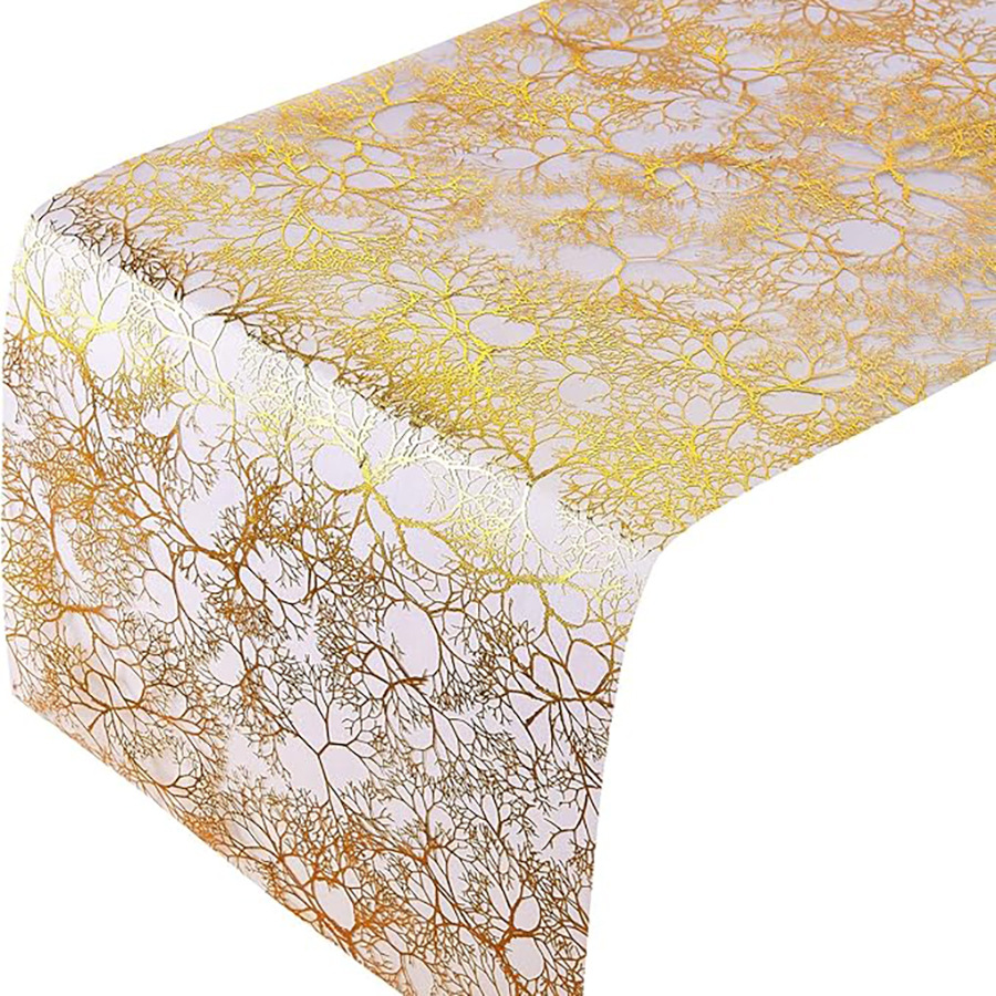 国境を越えた新しい欧根紗枝紋箔押しテーブル旗金色銀色レトロテーブル旗会食パーティーテーブル装飾