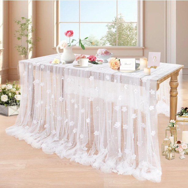 国境を越えたアマゾン真珠のテーブル旗のベールのテーブルクロスの純色の真珠の白い紗の美しい背景の布はネットの紗の卸売りを飾ります。