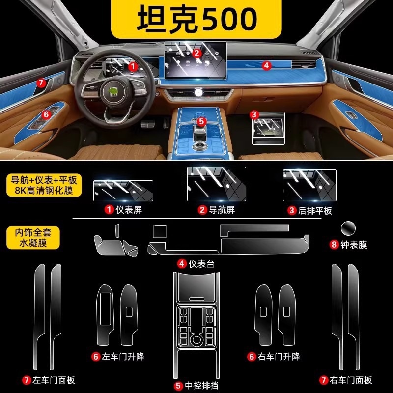 タンク 500hi4z インテリアフィルム中央制御保護スクリーンフィルム T 特別な車内用品修正アクセサリー黒技術