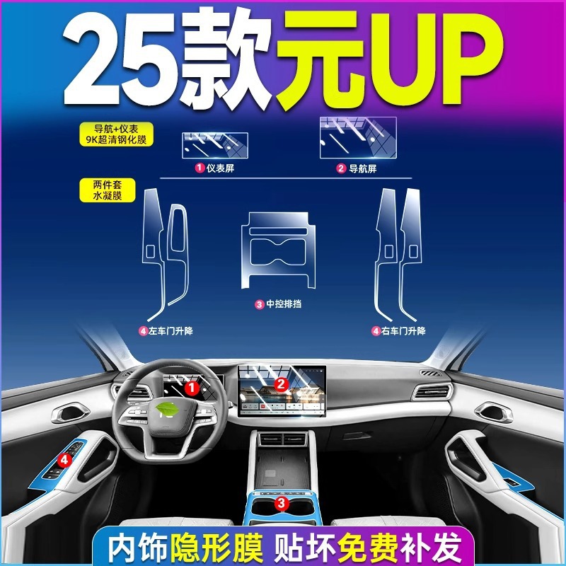 BYD Yuan up インテリア保護フィルム 25 枚、中央制御スクリーン強化フィルム、車内装飾用品、アクセサリー改造