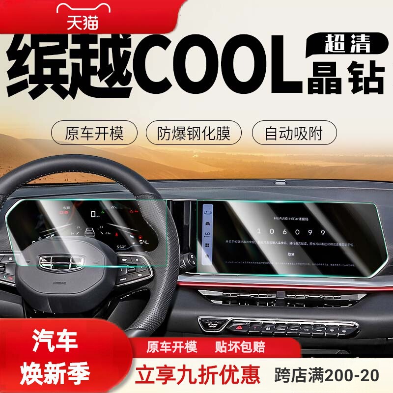 吉利ビンユエCOOL 24モデルに適した中央制御画面強化フィルム計器車内ディスプレイ保護フィルム