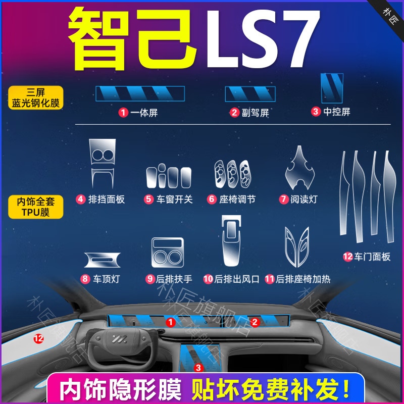 Zhi Ji LS7 インテリアフィルム、中央制御フィルム、スクリーン強化フィルム、特殊フィルム用品、アクセサリー、改造用品、Zhi Ji LS7