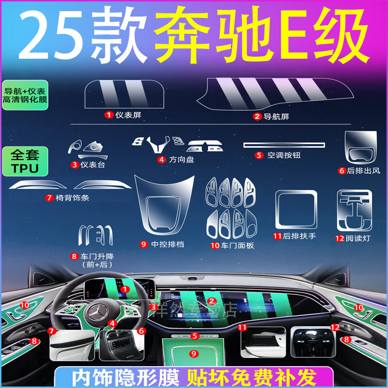メルセデスベンツ Eクラス E300L/E260 中央制御スクリーン強化フィルム インテリアフィルム 車内装飾用品 25種類 24種類
