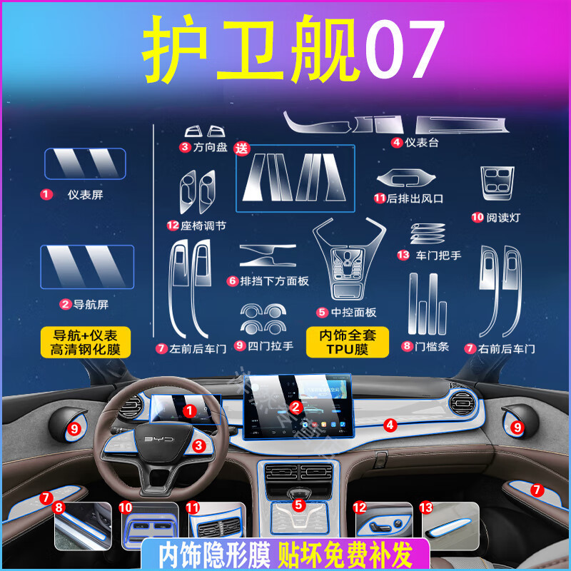 BYD インテグラル 07 インテリアフィルム 24 個、中央制御スクリーン強化フィルム保護 23 個、カーアクセサリー