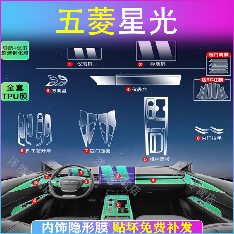 24種類のWuling Starlight EV専用中央制御フィルム、スクリーン強化フィルム、保護フィルム、内装装飾アクセサリー、23種類
