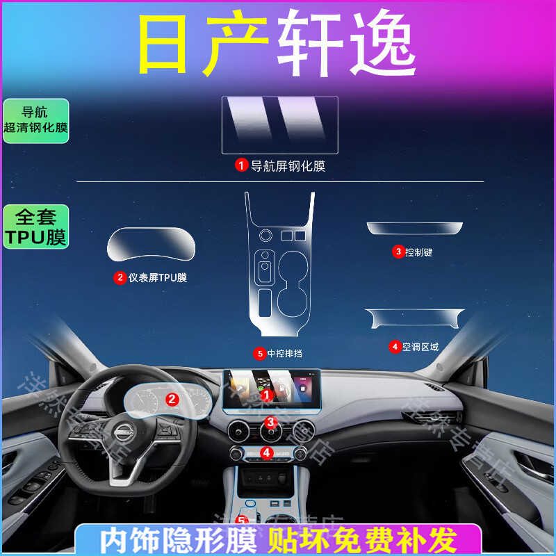 日産シルフィインテリアフィルム、中央制御スクリーンフィルム、改造車内用品に適した第14世代23モデル