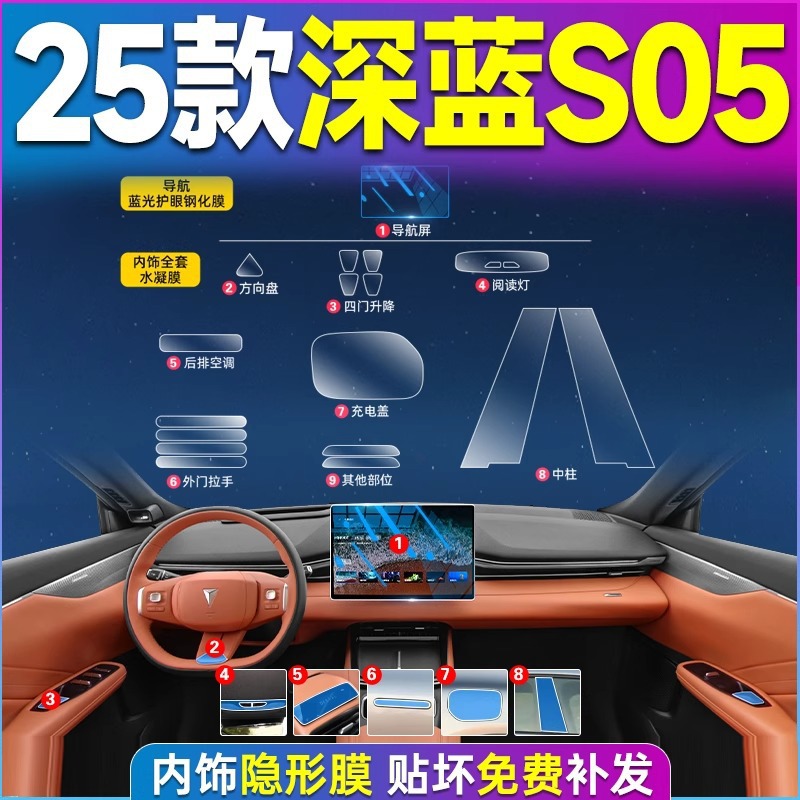 25 長安ダークブルー S05 インテリアスクリーン保護強化フィルム中央制御フィルムカー用品修正アクセサリー新