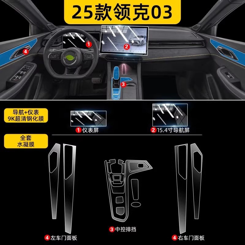 Lynk & Co 03 インテリア保護フィルム、中央制御スクリーン強化フィルム、車内装飾用品、改造パーツに適した 25 点