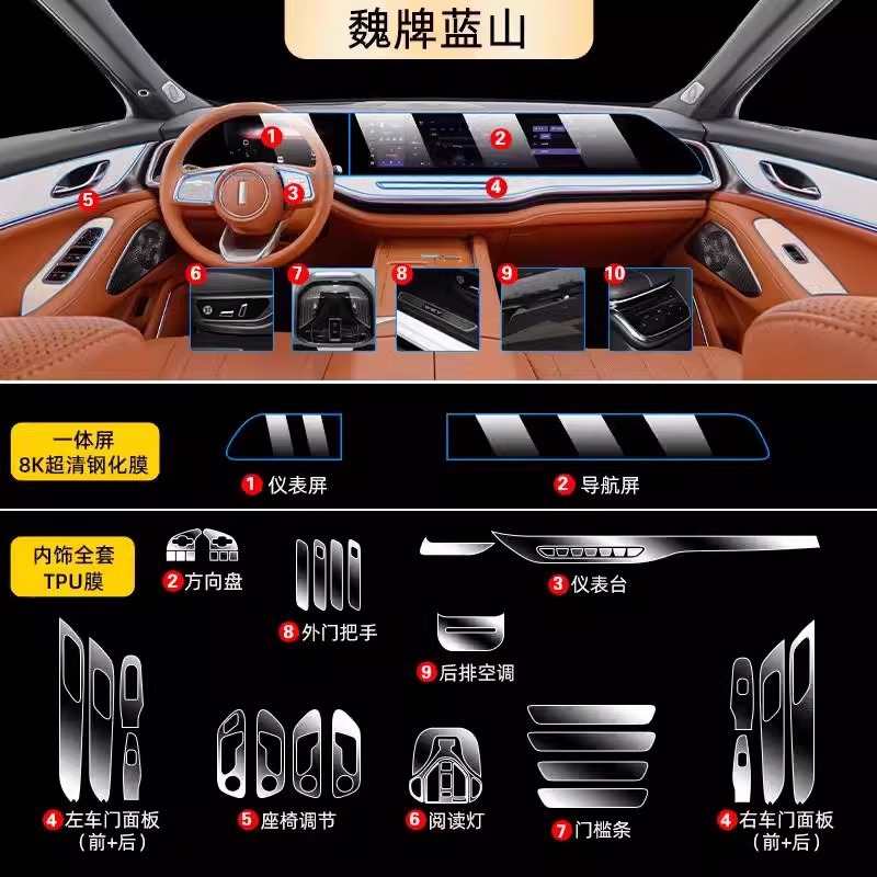 魏派 ブルーマウンテン専用インテリアフィルム スクリーン強化フィルム 中央制御フィルム インテリアカー用品 改造アクセサリー 魏派