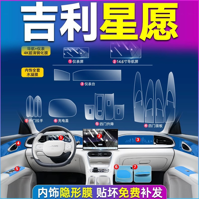 吉利スターウィッシュインテリア保護フィルム、中央制御スクリーン強化フィルム、カー用品強化フィルムの25モデルに適しています。