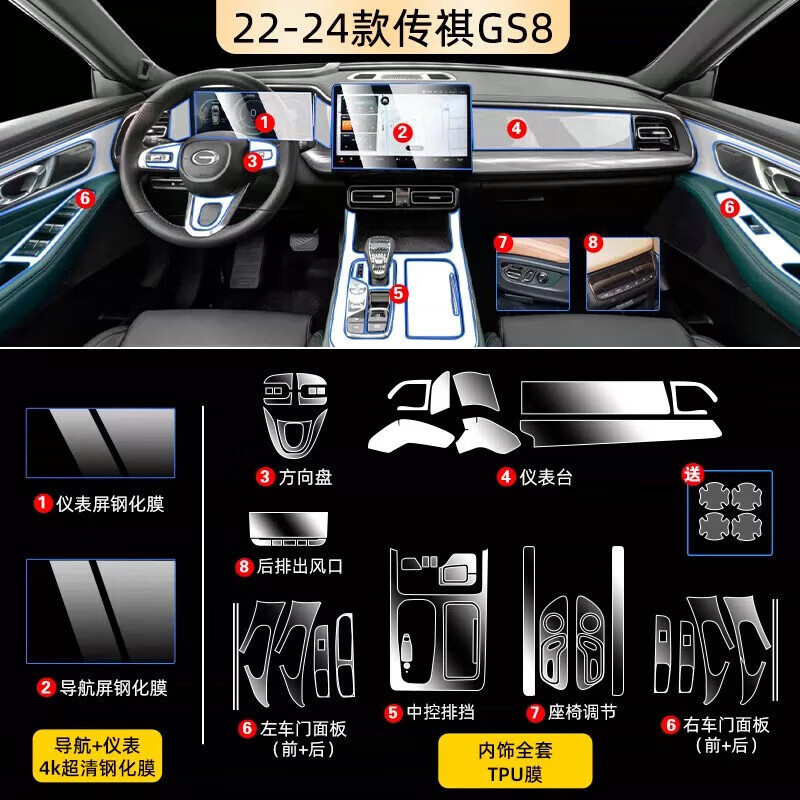 22-24 GAC Trumpchi GS8 特殊中央制御強化フィルムインテリアフィルムカー用品ナビゲーション機器に適しています。